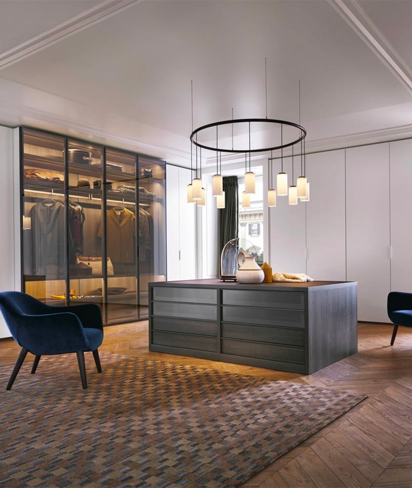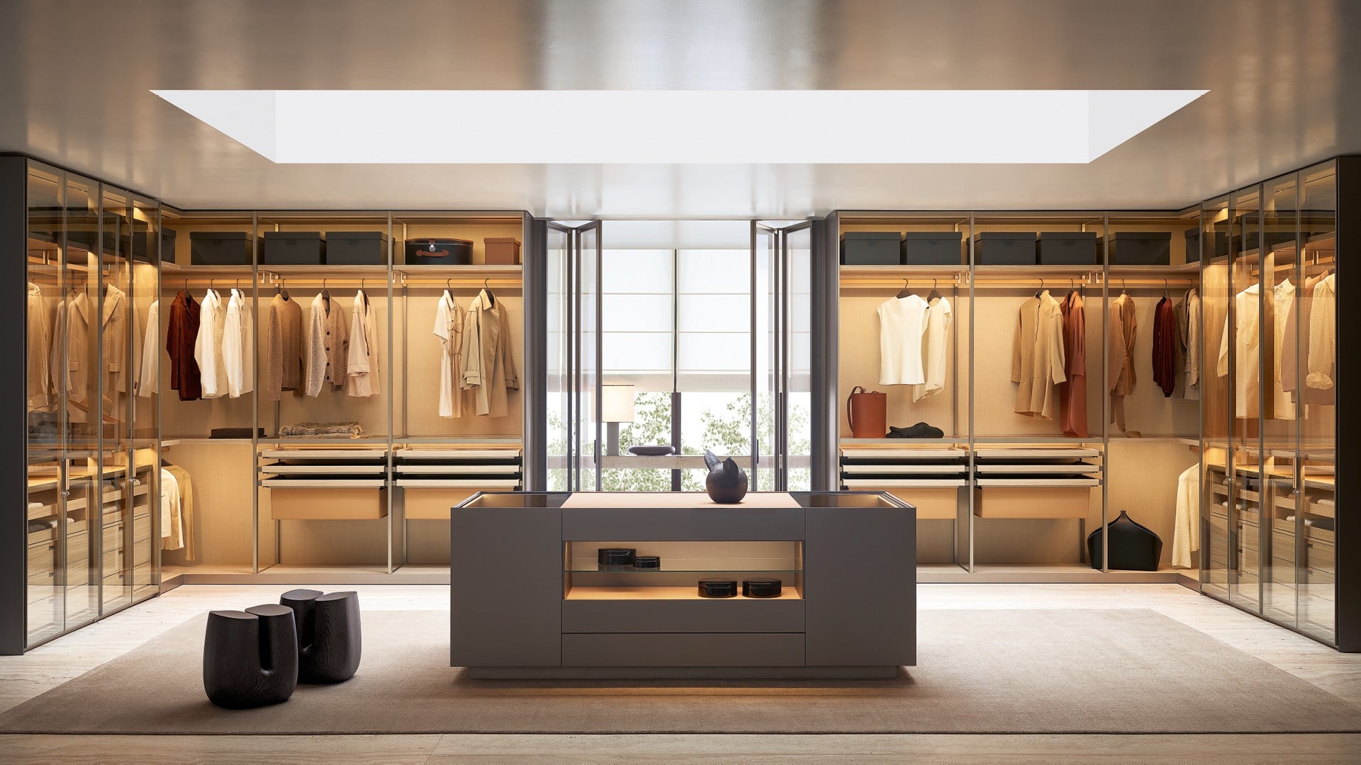 Poliform presents the systems for the night area: italian closet systems, wardrobes, walk-in closets, and island chests of drawers designed to create rational spaces to be dedicated to order. An offer that reinterprets the wardrobe with a modern approach, as a universal container to be customized with maximum freedom. This creates – starting from two systems, two island chests of drawers, and a long series of accessories and equipment – basically infinite possibilities of composition.