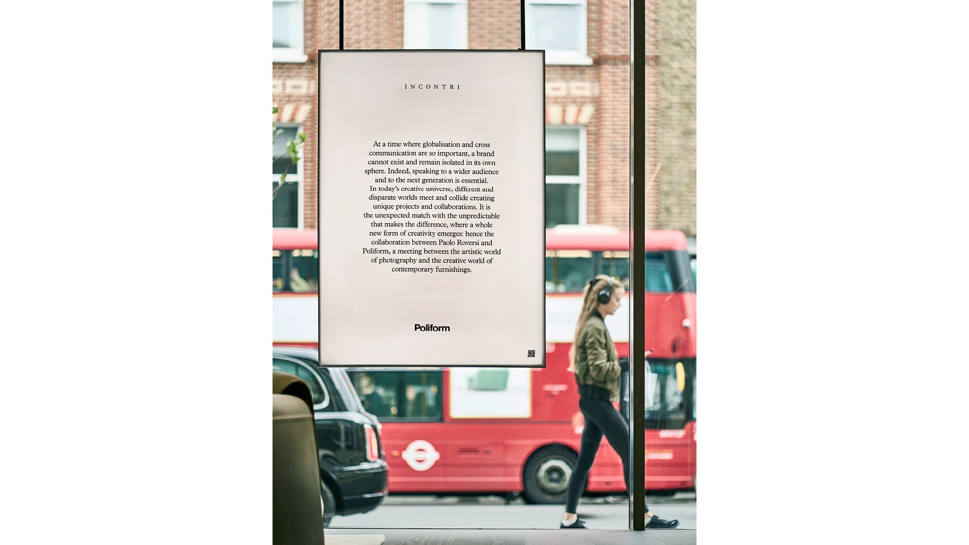 His shots (which have also become the images of a new advertising campaign, as well as the content of the first book of the “Incontri” program) stand out in the windows of the Poliform showroom on King’s Road: every photograph, capturing the encounter between models and furnishings, and between their inner spirits, has been placed in a special lightbox to create an open-air gallery, a pathway of perception immersed in the everyday life of the city. This public presentation will be followed by a private event in an exclusive London location, to bring out the deeper, more intimate aspects of the project, in an affinity of minds and values.