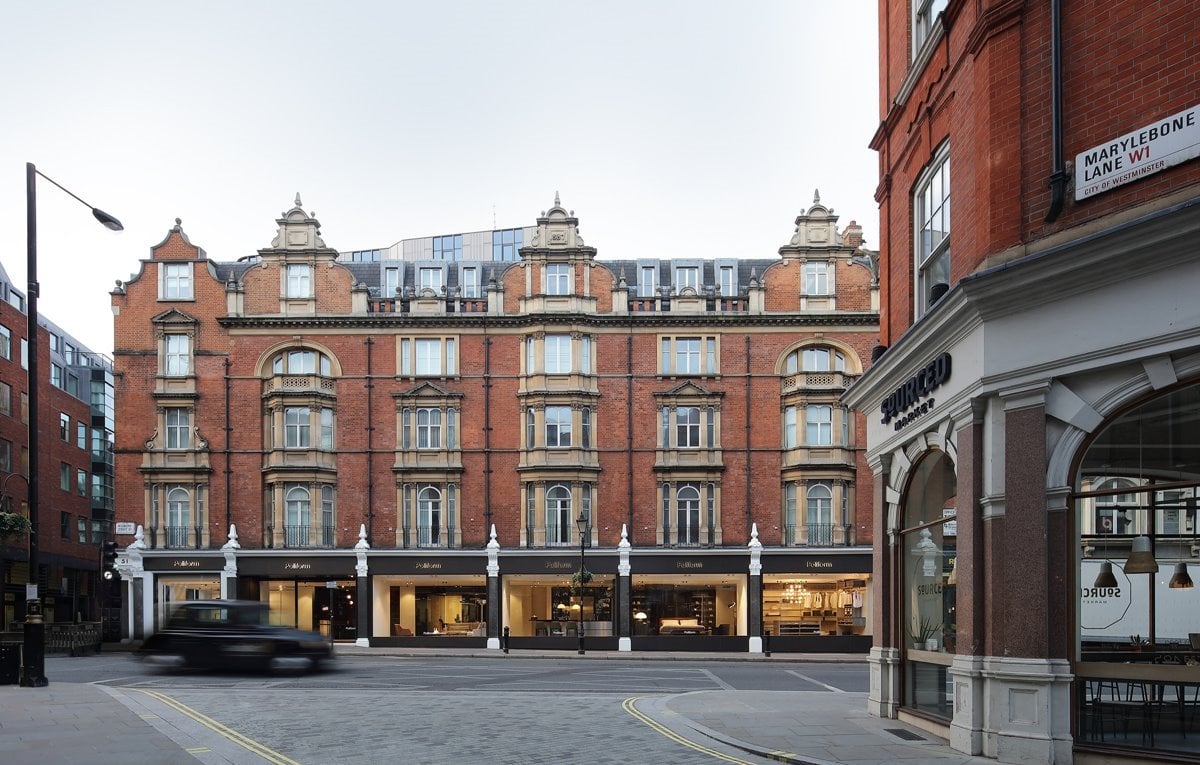 Located in a highly refined and creative part of the capital, in a beautiful Victorian building in the West End, the flagship store is spread out over two floors with a total area of 500 m2.Offering the perfect balance of tradition and modern style, the building has been restored and renovated in its entirety, with close attention paid to maintaining its historic features. With its numerous corners and recesses, the old labyrinth-style structure originally in place has made way for a large open exhibition area made even brighter by the 7 imposing windows at the front, which overlook the surrounding streets like a stage in complete synergy with the outside world.