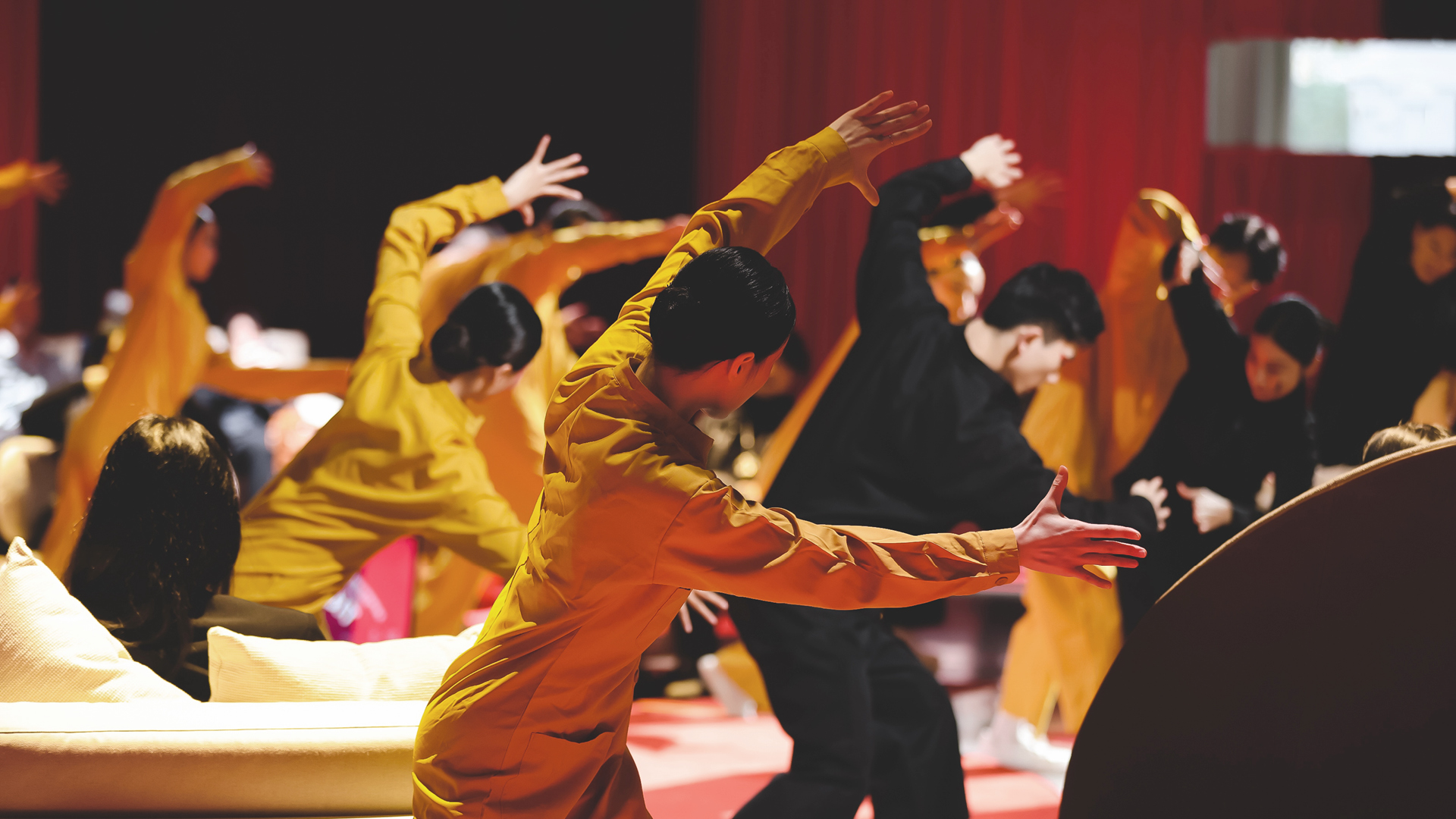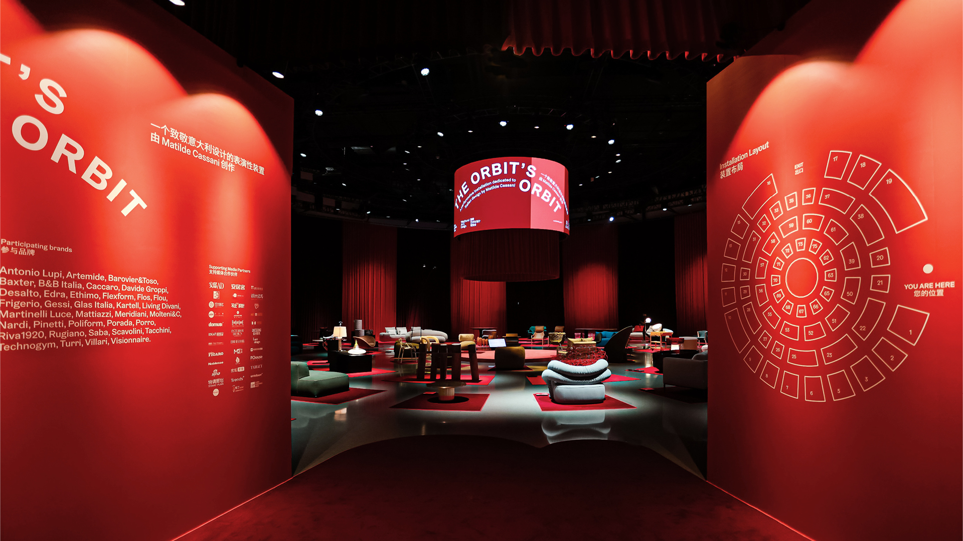 Inside the prestigious The Orbit, the building whose architecture was designed by Heatherwick Studio and whose interior design was managed by Wutopia Lab, a cultural hub of the new financial district of Xuhui, the layout curated by Matilde Cassani transforms the space into an urban square in which over 50 iconic “Made in Italy” pieces are arranged between concentric spirals that culminate in the central stage, while all around performers and visitors are called to take part in this “festive city scene”.