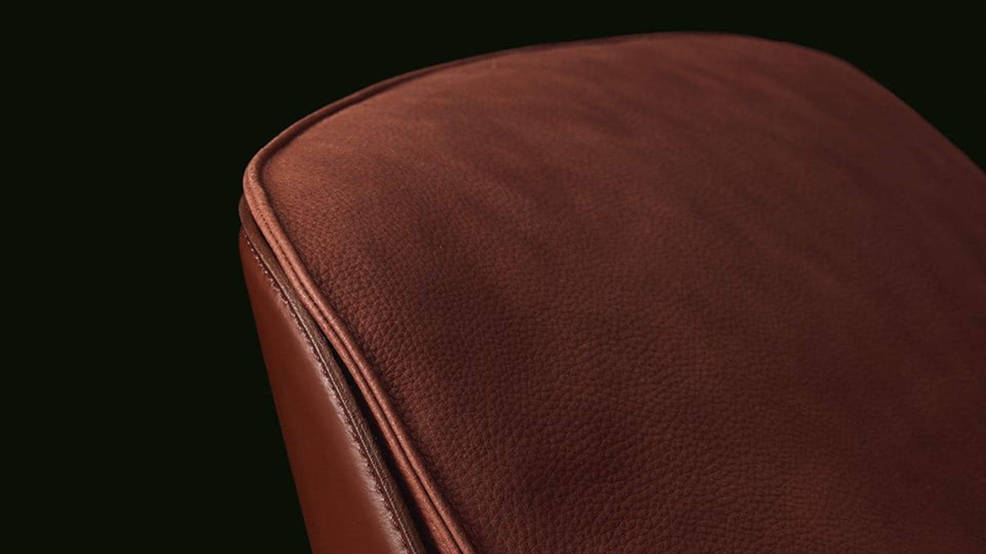 Elegant and sophisticated, the armchair is made up of two perfectly integrated shells—the outer one in leather, the inner one softly padded and upholstered in fabric or leather. Its visual appeal is matched by that of the seat, designed for maximum comfort.