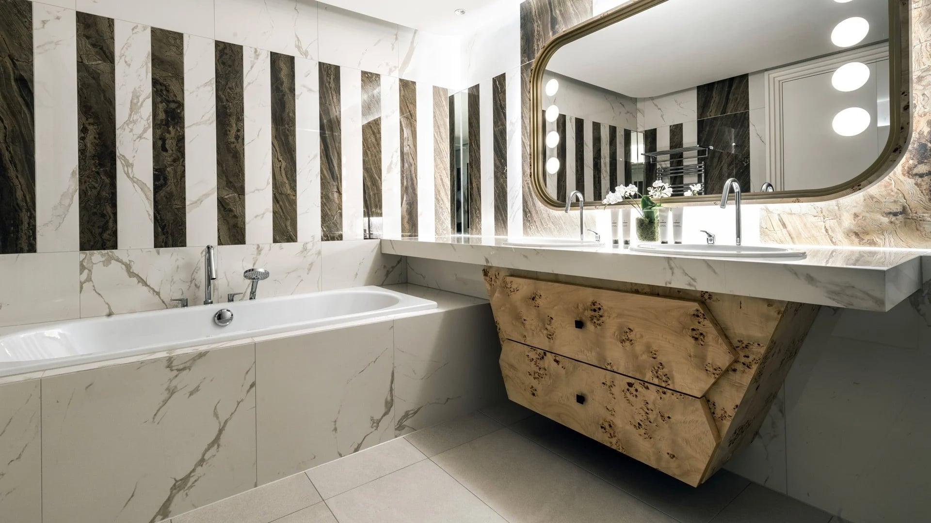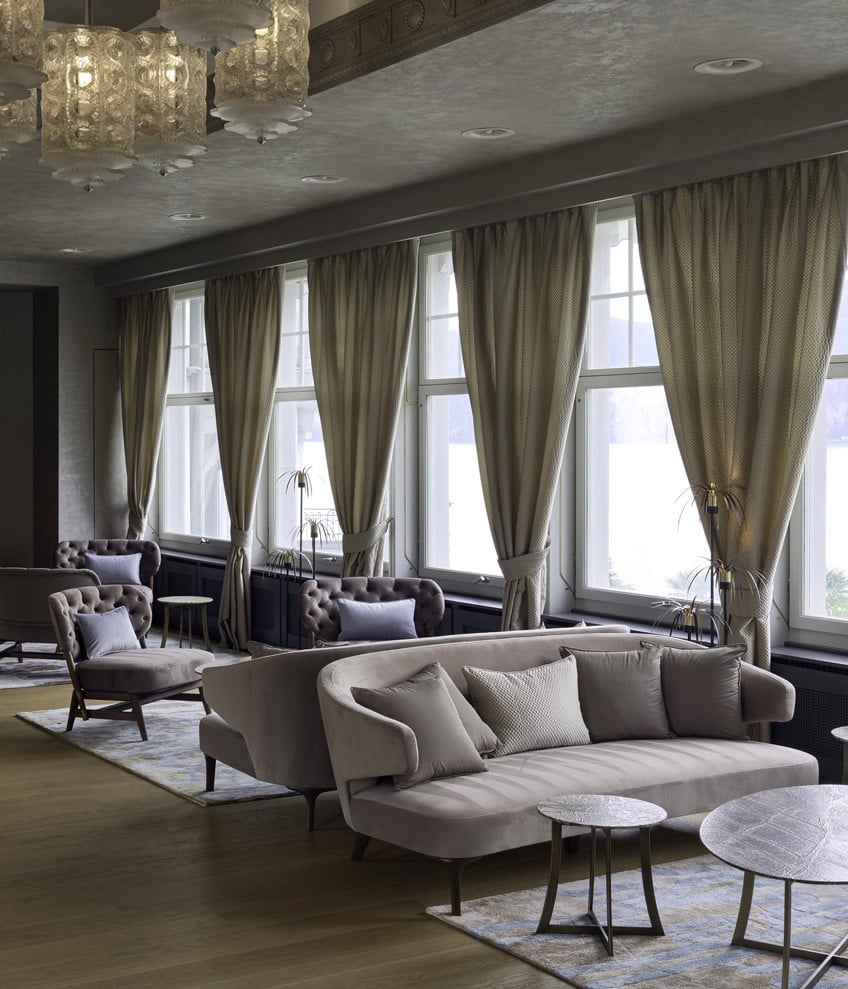 Poliform Contract’s contribution was transversal: from the furnishings of the rooms (entrance door and false ceiling, wall panelling with mirrors, bathrooms, wardrobes) to the curtains in all areas of the hotel, including the public spaces, as well as the furnishings of the spa.
