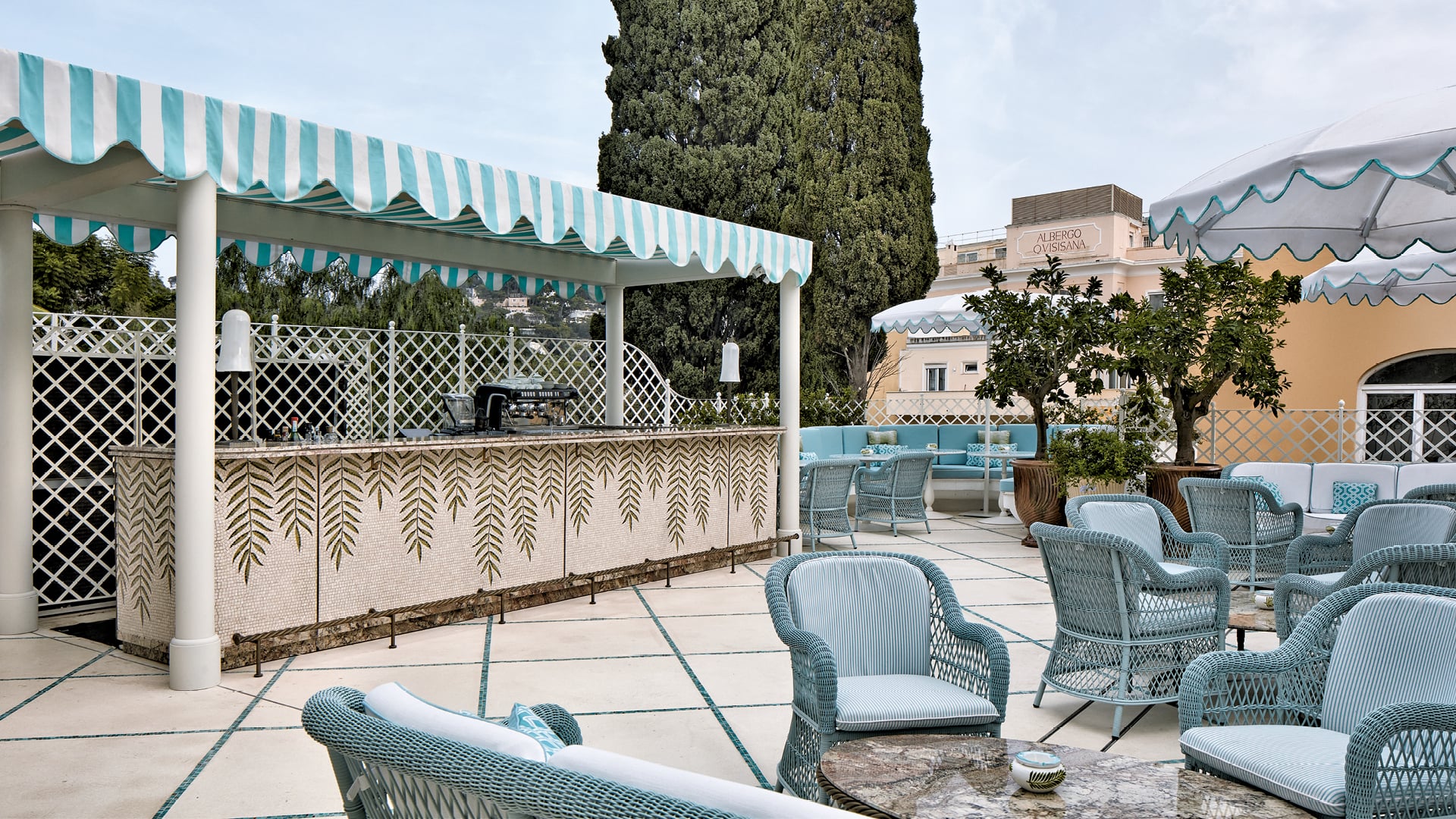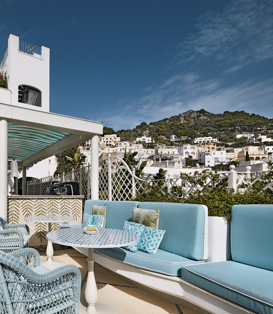 Hotel La Palma is located in the middle of Capri, near the Piazzetta, so it really lies at the core of what Capri represents. I wanted the hotel to look like a villa and feel like a home. In a way, my experience in designing homes shines through, but what is new is that with a hotel I have to please not just one family but all the different people who come every season, people from all over the world and Italians themselves. It’s been a very interesting and challenging way of decorating, also thinking about the historical context of the Italian style, and the Italian way of doing things. I wanted people to feel comfortable, and to feel that the place is appropriate. An appropriate, elegant hotel that blends in well with Capri, as if it has always been there.