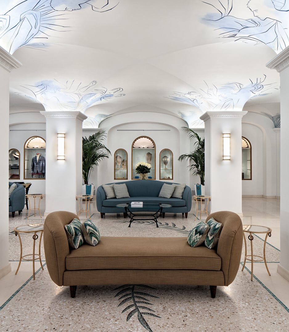 I’ve known Capri for more than 25 years, I’ve been going there every summer, so the most important thing was the inspiration it has given me. Thinking about the building and its historical references, I wanted to bring it back to its original narrative, complementing the architectural history with something up to date, restored and conserved for the future.