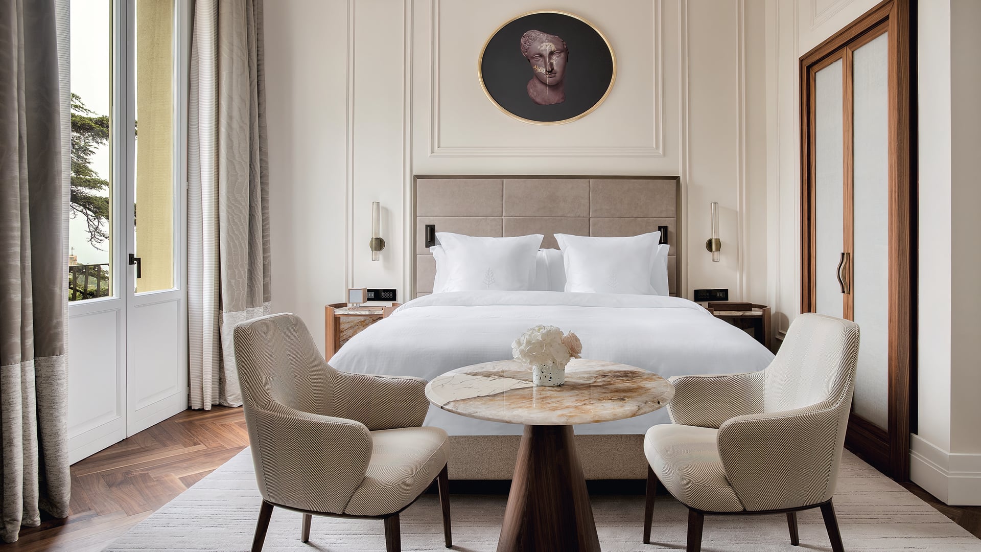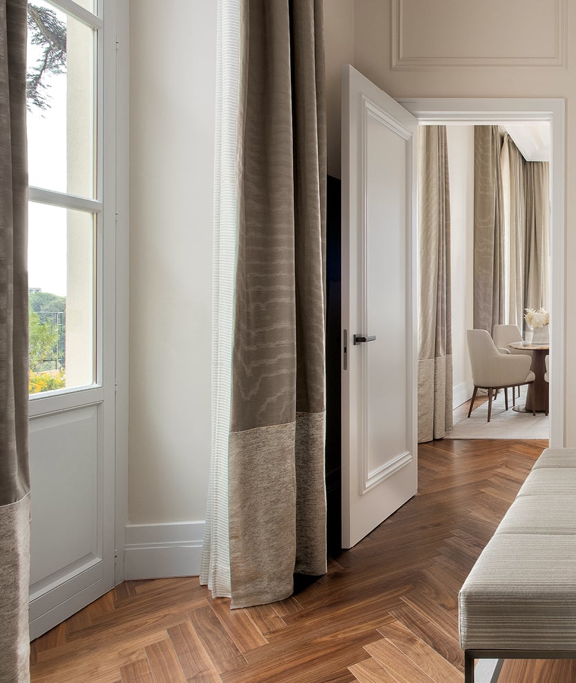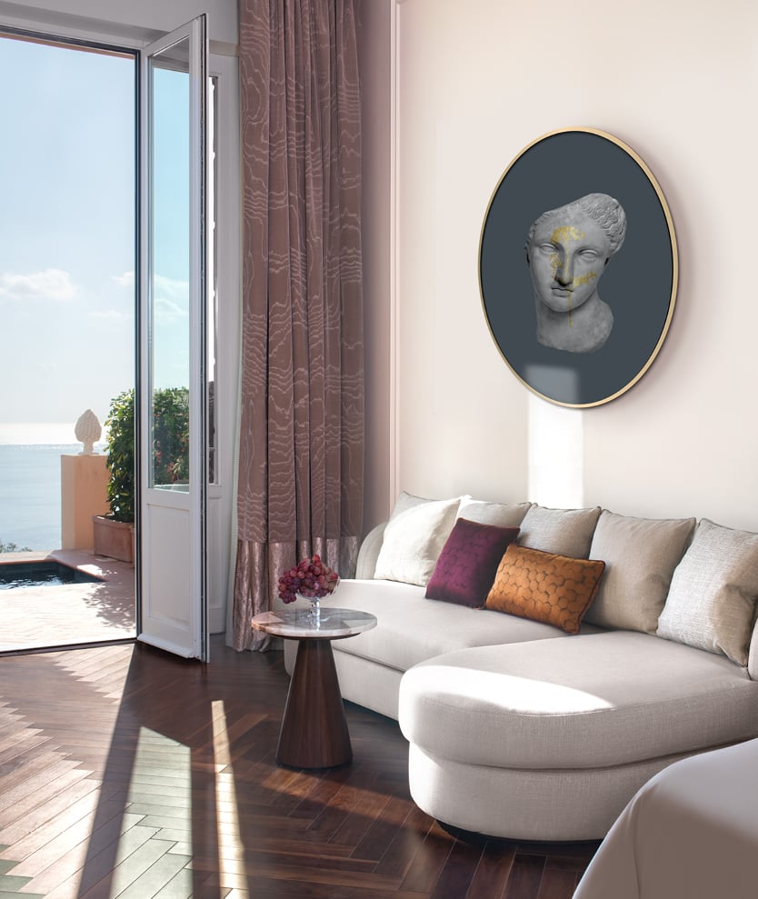 Opened again in July 2021, San Domenico Palace was renovated by Neapolitan architecture firm Pisani Morace. Rosaria Catania, from Messina, oversaw the restoration works, whilst the garden was designed by landscape architect Marco Bay. Fit-outs and furniture were created by Poliform Contract following designs by architect Valentina Pisani.