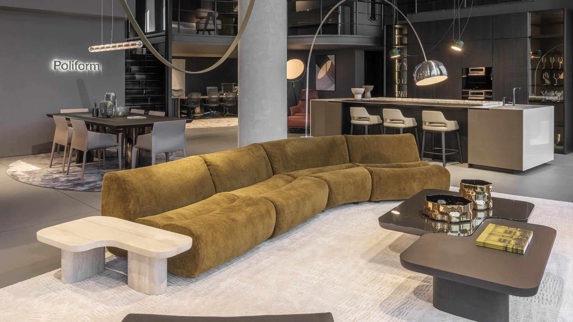 En sus 320 metros cuadrados, la colección Poliform se presenta en toda su amplitud: propuestas para el salón, el dormitorio y la cocina.