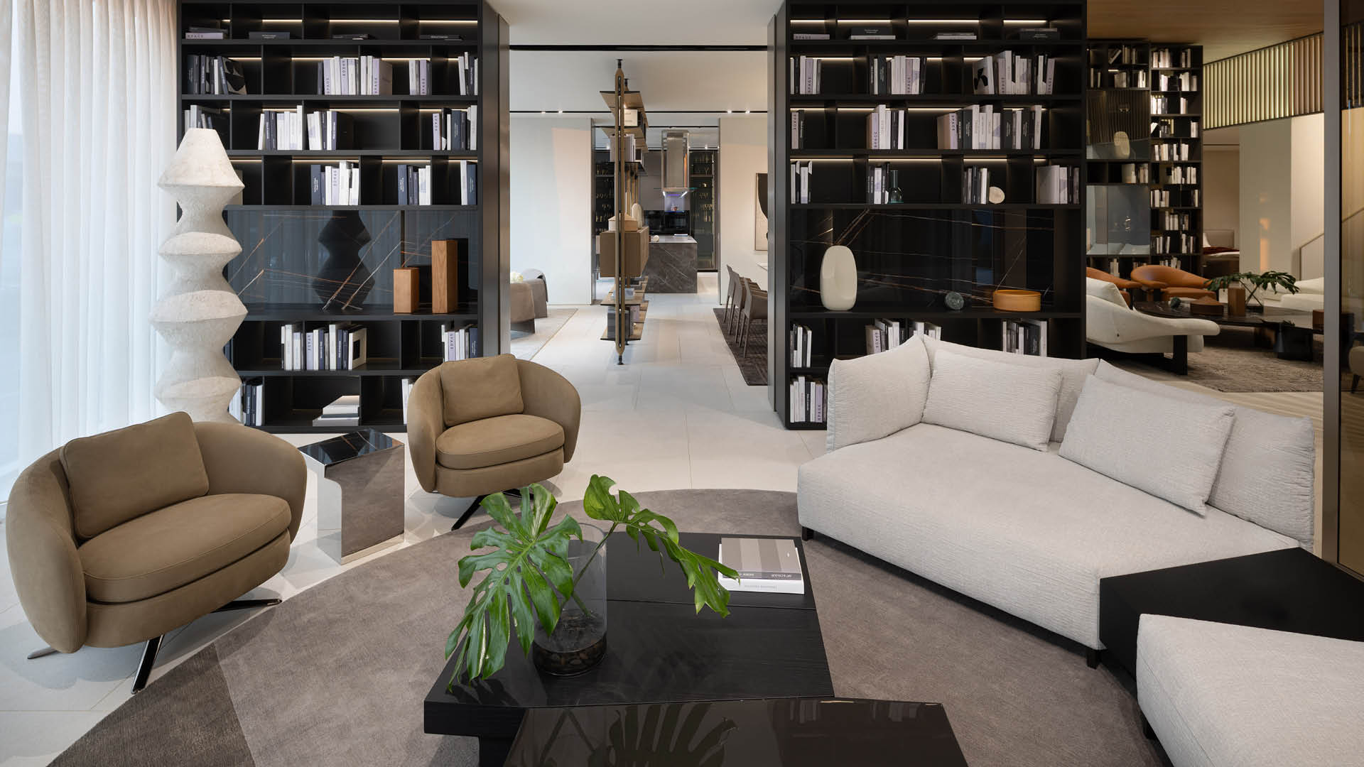À l’occasion de la plus célèbre semaine du design du Moyen-Orient, le showroom se transforme pour accueillir les nouvelles collections 2025, redéfinissant l’atmosphère du rez-de-chaussée et du premier étage à travers des compositions inédites. Les vedettes sont les systèmes de sièges Joan et Owen, deux interprétations différentes du confort et de l’élégance pour le salon, tous deux dessinés par Jean-Marie Massaud.