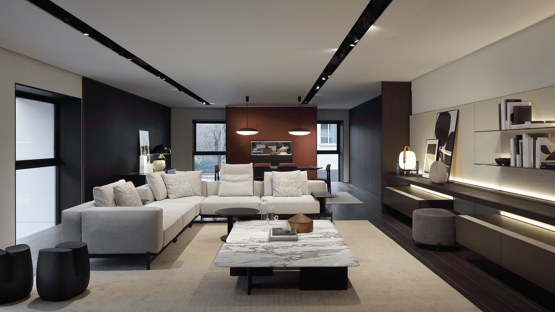 Poliform réinterprète le living avec élégance et innovation dans son showroom de Milan.