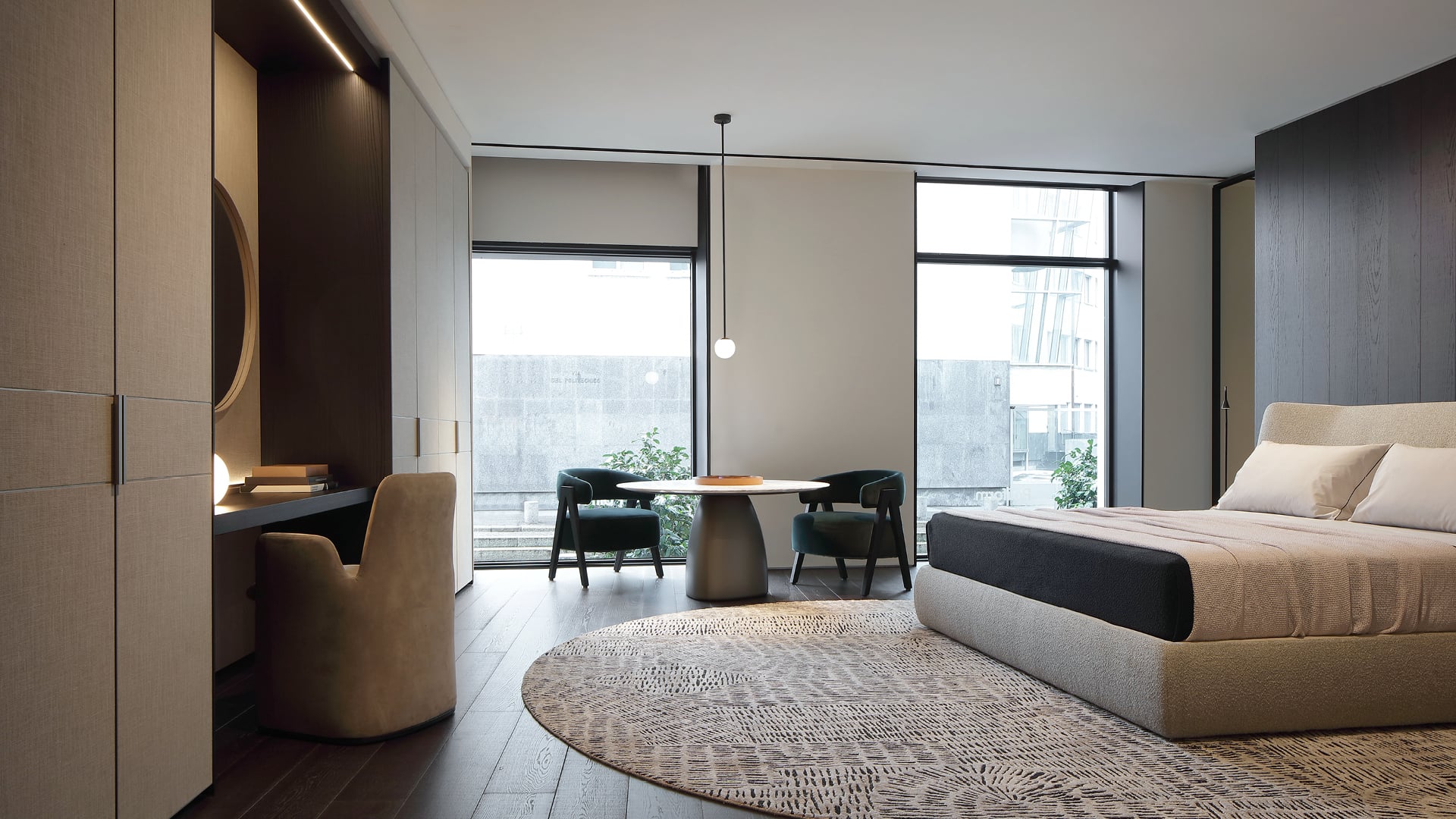 À l’étage supérieur, un hommage au confort du quotidien prend forme à travers les nouvelles propositions de canapés Bristol, Orbis et Brera. La modularité des systèmes s’adapte à l’espace et culmine dans l’ensemble dining avec la table Monolith, avant de se poursuivre dans l’espace nuit, déjà protagoniste du showroom aux côtés des systèmes architecturaux polyvalents et du spectaculaire dressing. Poliform Milano met ainsi en scène un concept de maison complète, allié à l’élégance contemporaine de l’art de vivre.