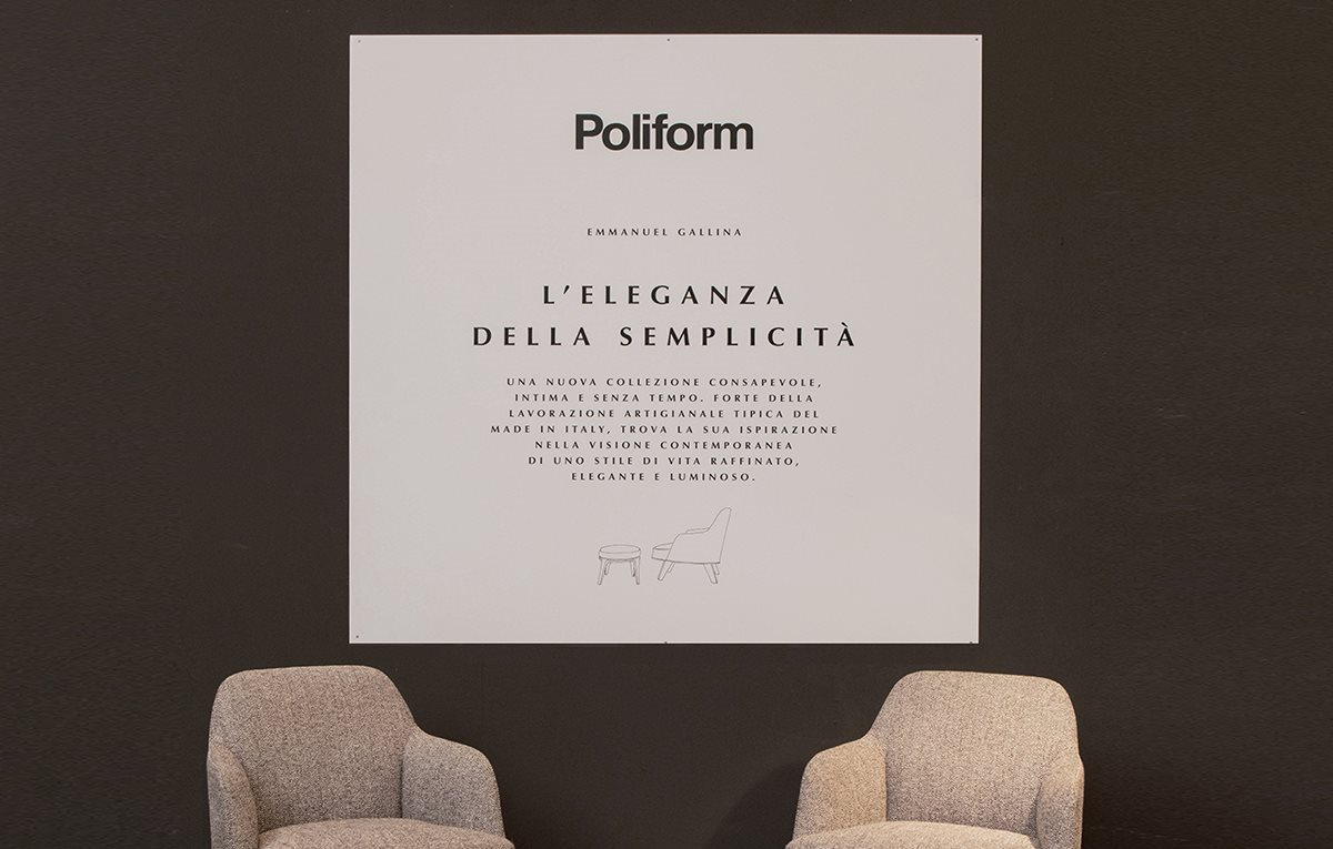 Durante i tre giorni dedicati a convegni e workshop ha avuto luogo una conferenza stampa di Emmanuel Gallina con il tema “l’eleganza della semplicità” incentrata sulla presentazione delle nuove proposte disegnate per Poliform. Scrittoi, divani e poltrone per una collezione consapevole, intima e senza tempo. Forte della lavorazione artigianale tipica del Made in Italy, trova la sua ispirazione nella visione contemporanea di uno stile di vita raffinato, elegante e luminoso.