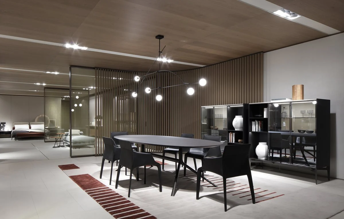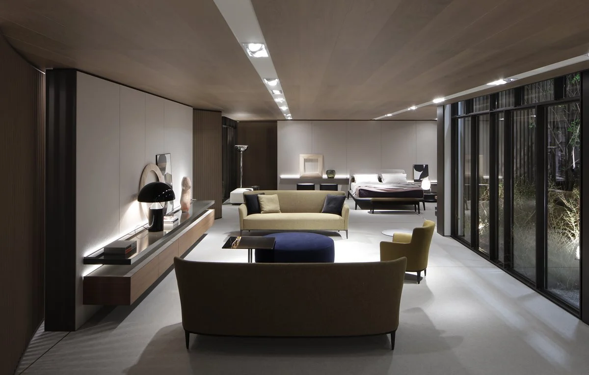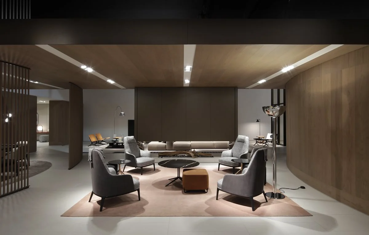 Uno spazio espositivo di oltre 1700mq suddiviso in due aree il cui accesso si configura come una piazza, punto di accoglienza e contenitore di vissuto e di relazioni, palcoscenico ideale per l’ingresso nel mondo Poliform.