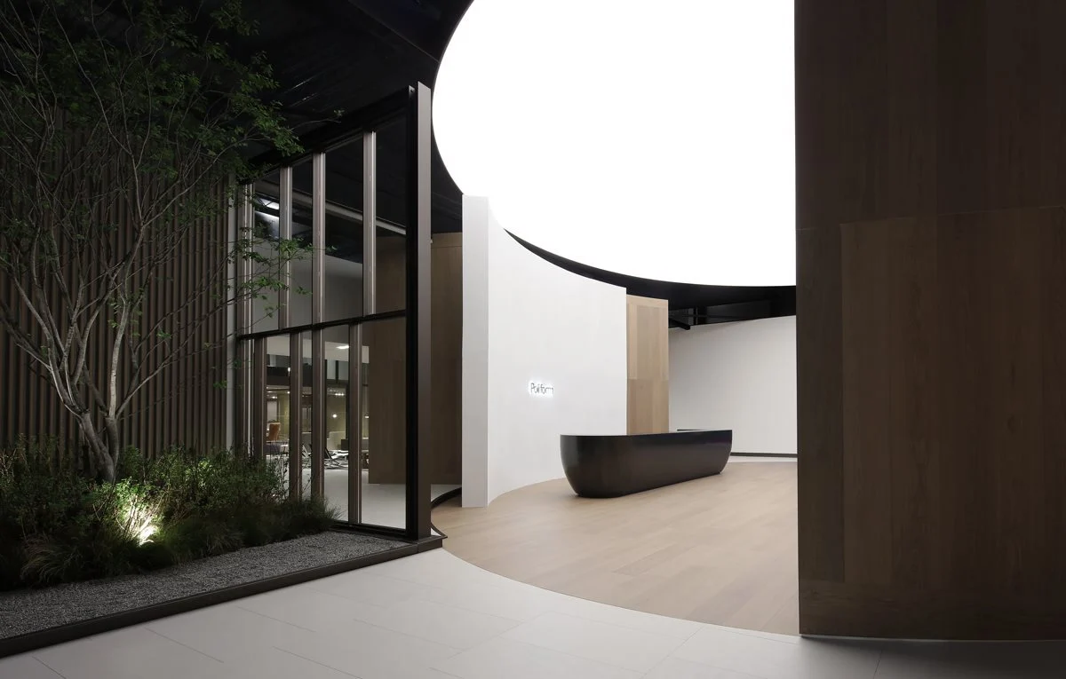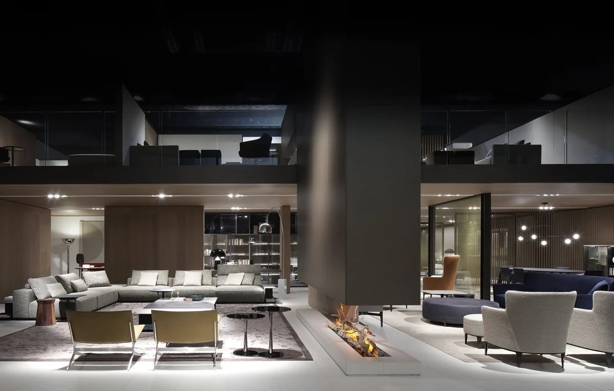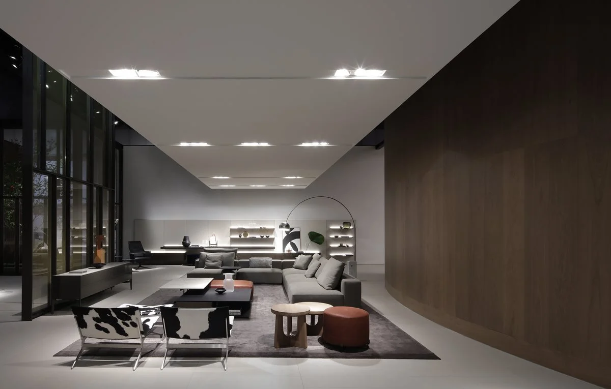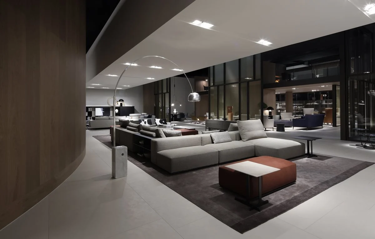 Uno spazio espositivo di oltre 1700mq suddiviso in due aree il cui accesso si configura come una piazza, punto di accoglienza e contenitore di vissuto e di relazioni, palcoscenico ideale per l’ingresso nel mondo Poliform.