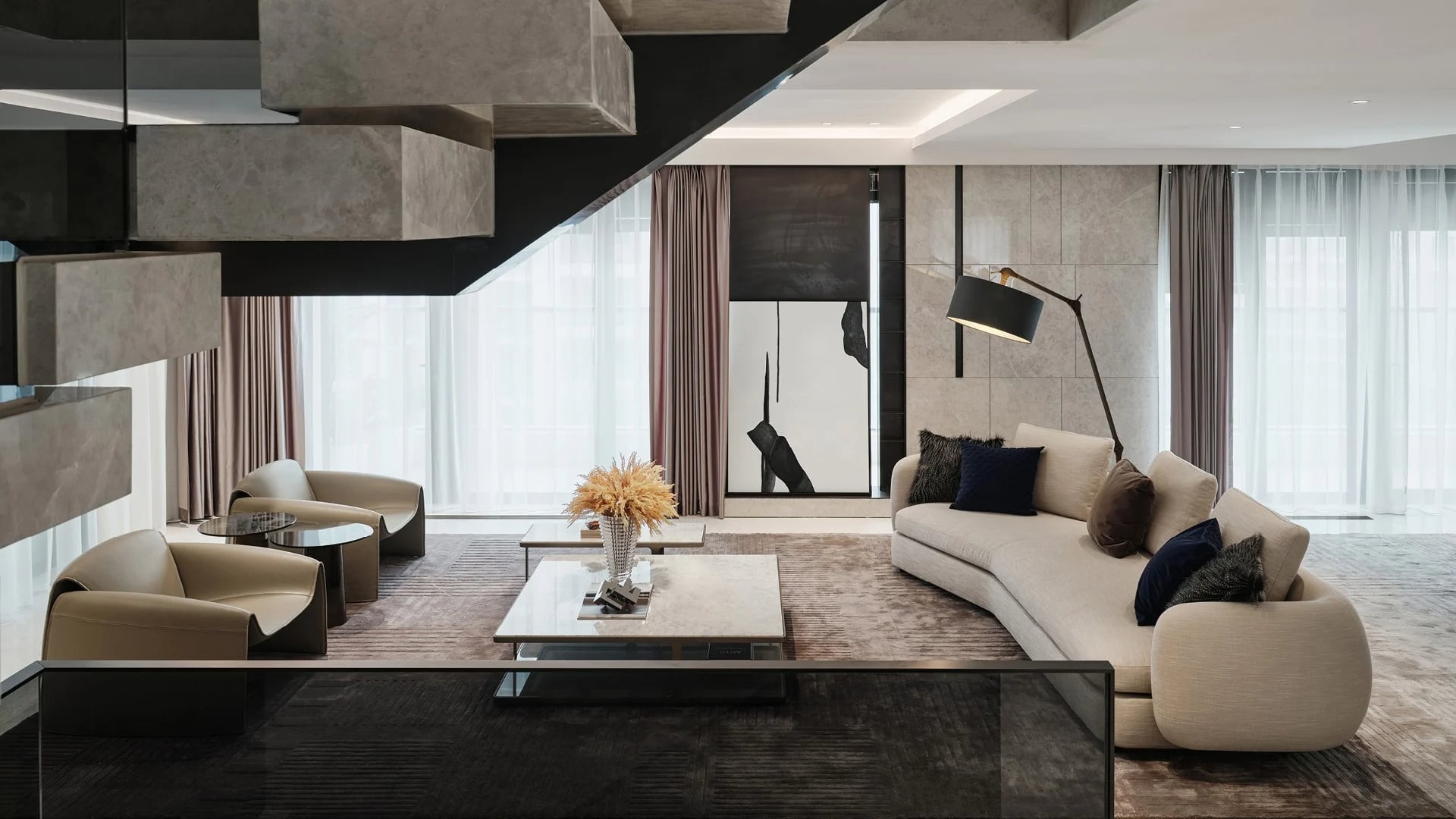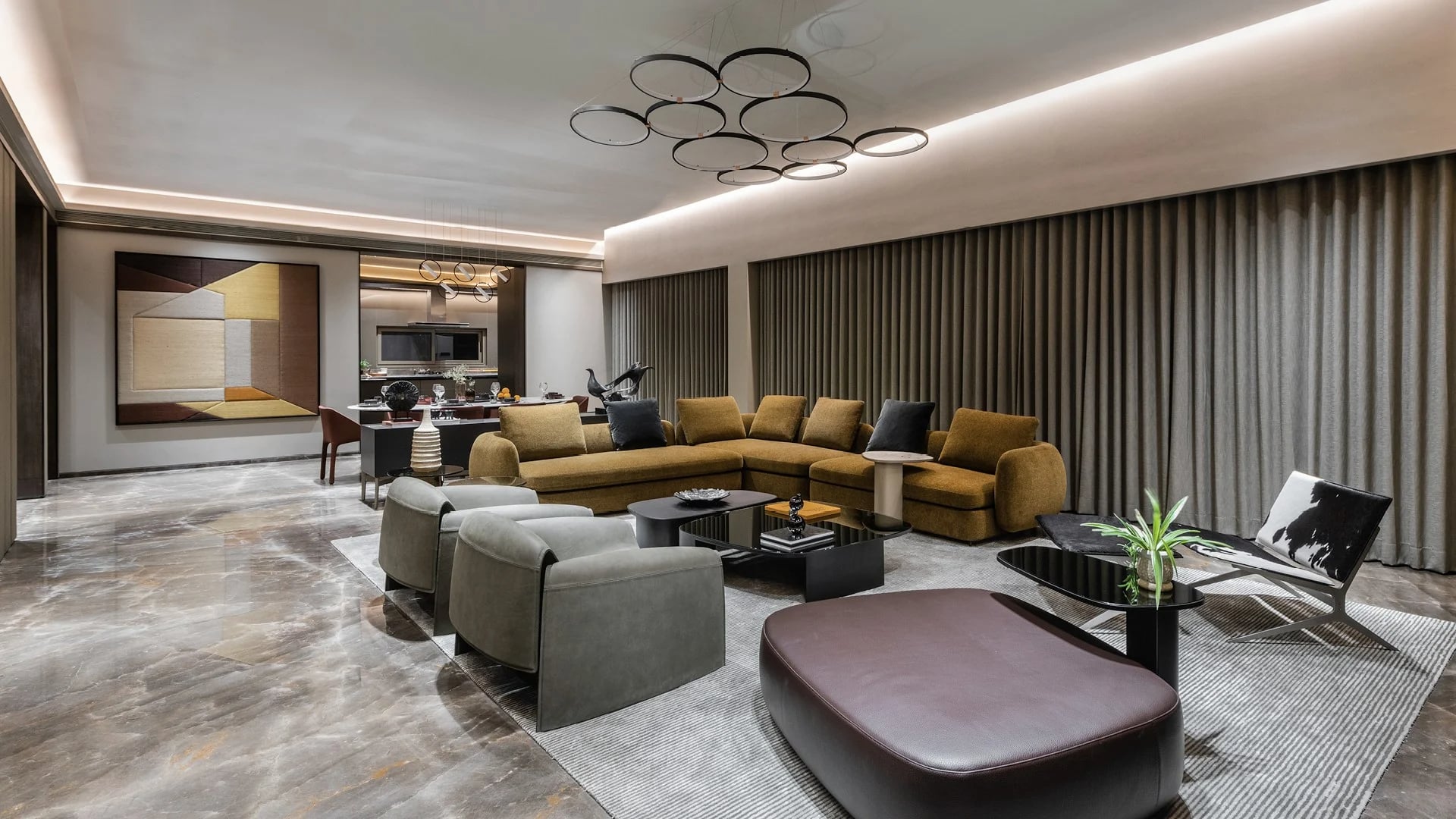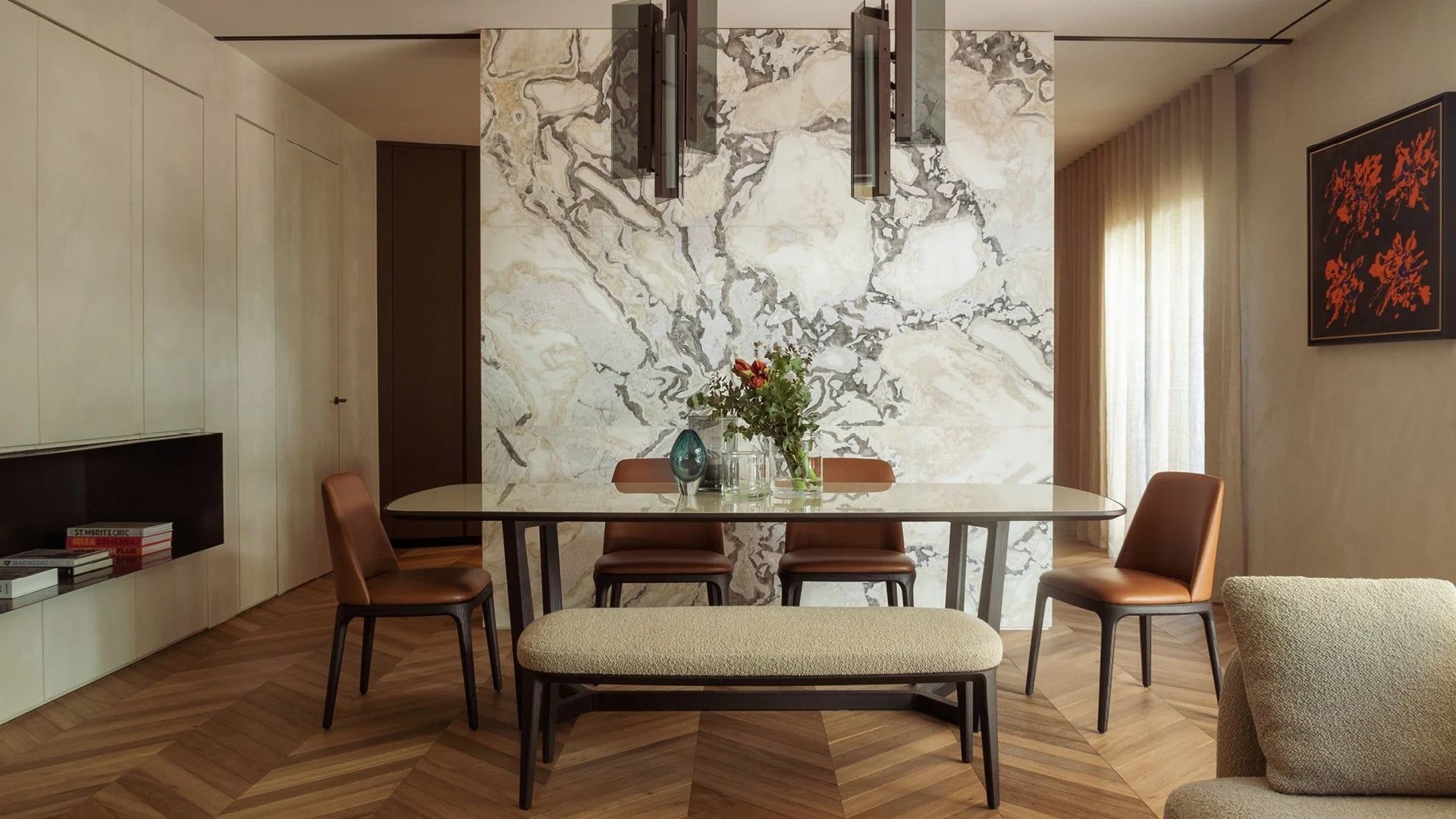 L’interno è completamente arredato con complementi e sistemi Poliform alla zona giorno alla notte, che offrono una raffinatezza unica e il comfort dello stile di vita contemporaneo.