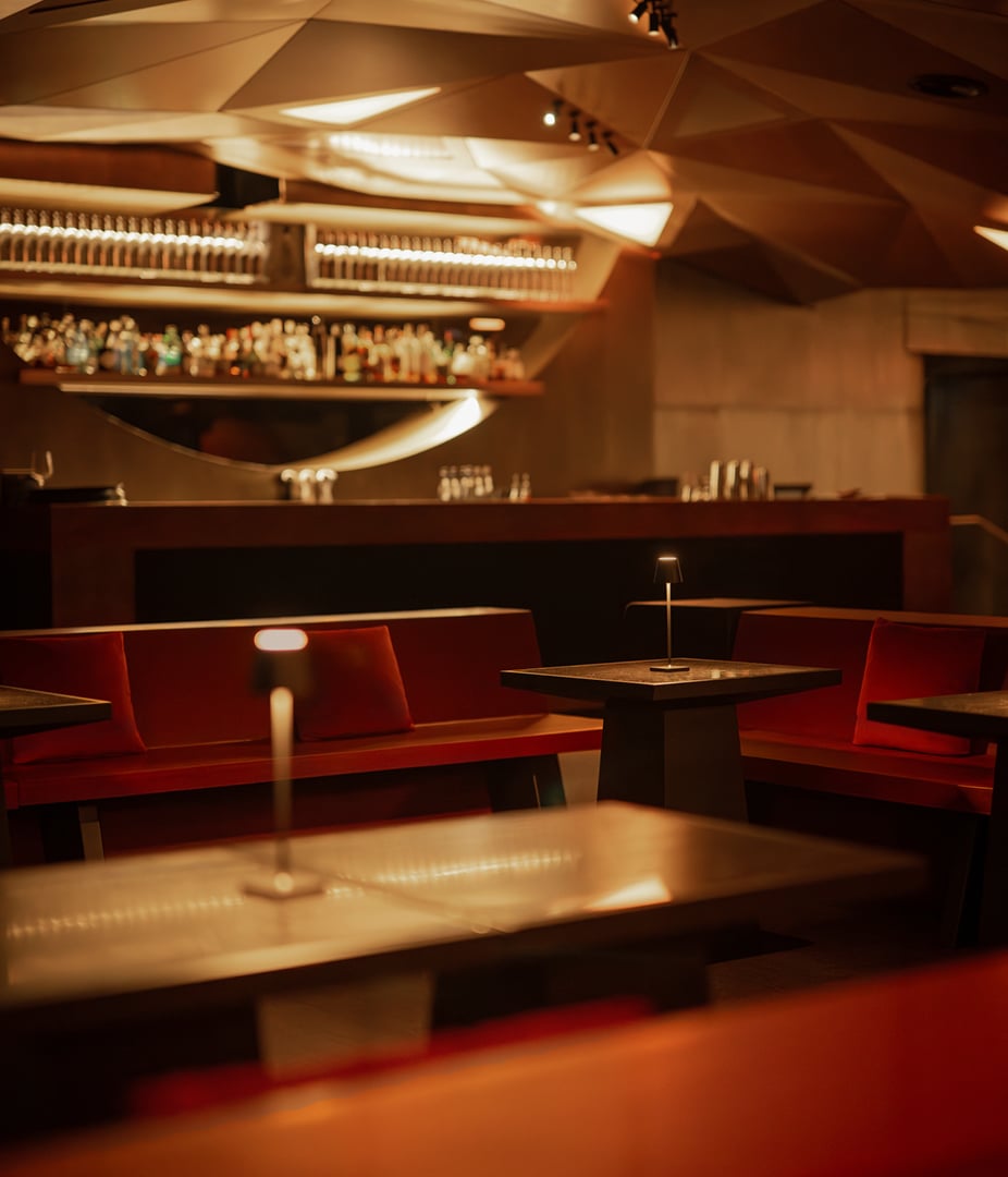 Situato al secondo piano del Grimaldi Forum, Twiga si affaccia direttamente sulla baia di Monte Carlo, offrendo un panorama mozzafiato che si assapora pienamente dalla terrazza: l’esperienza immersiva nell’atmosfera del Principato si intreccia così con l’intrattenimento di alto livello che da sempre distingue il marchio, e con la raffinata proposta culinaria del ristorante Vesta, oggi parte integrante del club – un connubio che consolida la sinergia tra i marchi del gruppo. A firmare questa scenografia è lo studio Stefano Belingardi Architects che trasforma gli interni con la collaborazione di Poliform e della sua Divisione Contract. L’azienda ha infatti tradotto il concept del progetto in una scenografia su misura curata in ogni aspetto: dai rivestimenti agli arredi, fino alla decorazione con lampade create ad hoc. Nella location monegasca emerge evidente l’identità di Twiga e i suoi dettagli caratterizzanti – come l’intensità del colore rosso che fa da padrone in una palette chiaroscurale, i giochi di geometrie che creano un ritmo vibrante e dinamico negli spazi – a definire un’atmosfera glamour e sofisticata, vagamente retrò. Poliform ha dato forma a questo stile esprimendo il suo saper-fare nelle realizzazioni custom made, a partire dal rivestimento dei soffitti – una composizione di triangoli irregolari che emergono dal piano per dare movimento e profondità differenti all’ambiente. Poliform ha reso altrettanto dinamico il rivestimento delle pareti (con boiserie tridimensionali) e del bancone bar, dove le geometrie ritornano in una combinazione di semicerchi e rette. Sono stati poi realizzati su misura anche la pavimentazione, il rivestimento del bagno in prezioso marmo, le porte, il dj set. E così anche gli arredi, sempre su disegno: le panche, i divanetti, fra composizioni lineari, angolari e curve, e le panadore. Mentre i tavoli Flute e le sedie Magnolia del catalogo Poliform sono stati personalizzati per integrarsi perfettamente nel progetto.
