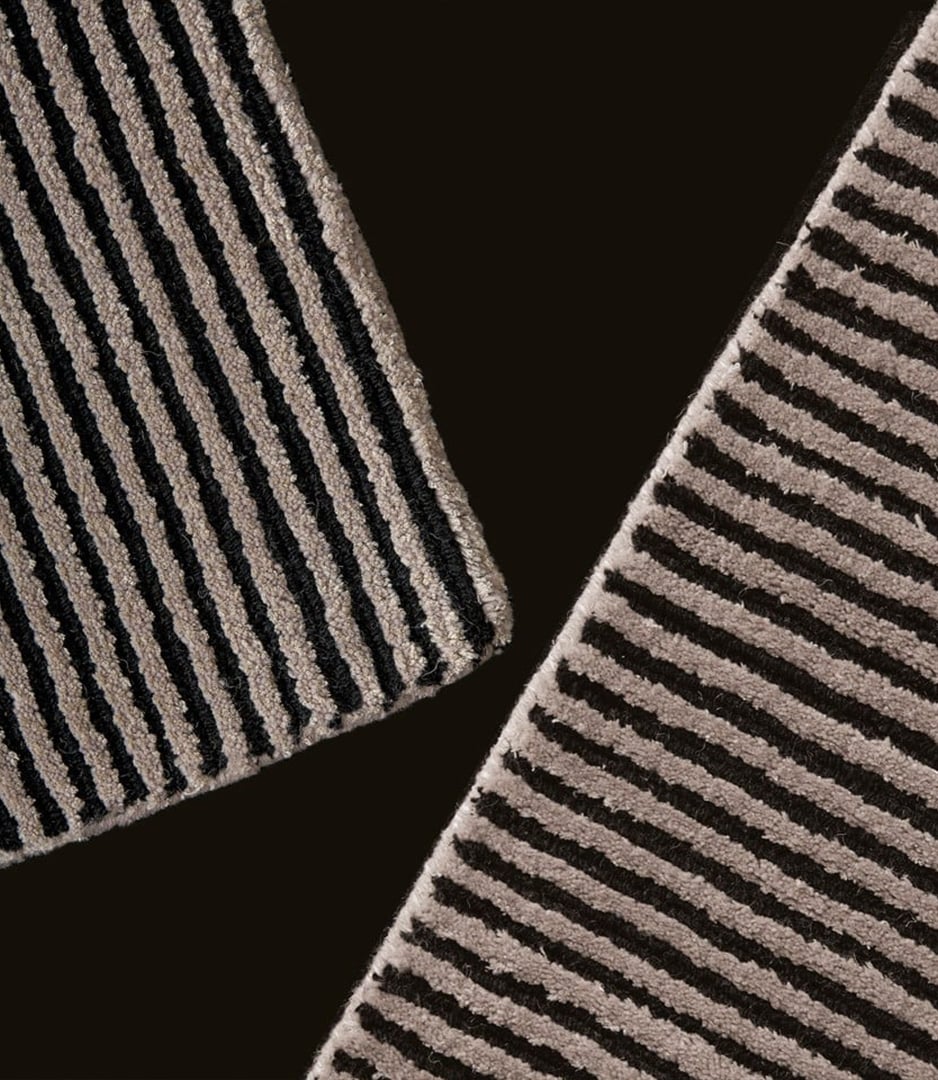 Cannelé — это двухцветный ковер в полоску. Линии сформированы сочетанием двух видов отделки. Для линий черного цвета используется пряжа букле, а для линий жемчужного цвета — ворс ручной резки. Основа ковра из хлопка, ворс из гималайской шерсти и бамбукового шелка, пряжа букле из гималайской шерсти. Ковер…